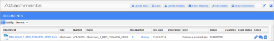 The attachments column displays an attachment icon if attachments exist against a line item. Users can click on the icon to open the Attachments pop-up window, where they may review existing attachments or add any new ones, as required.