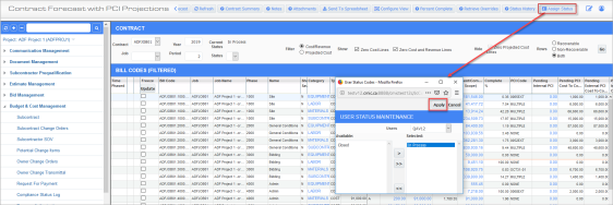 Pop-up window launched from the [Assign Status] button on the Contract Forecast with PCI Projections screen