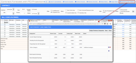 Pop-up window launched from the [Best/Worst Case Analysis] button on the Contract Forecast with PCI Projections screen