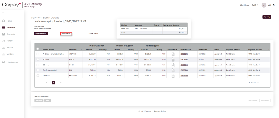 Step 3: Approve Corpay Payment Batch