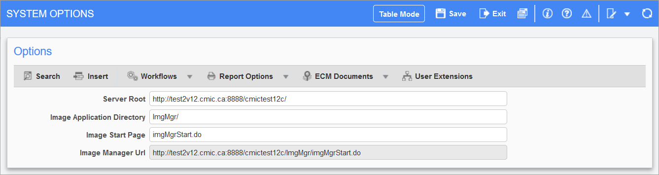 This screen allows users to set the Image Manager URL. The following describes the fields available on this screen.