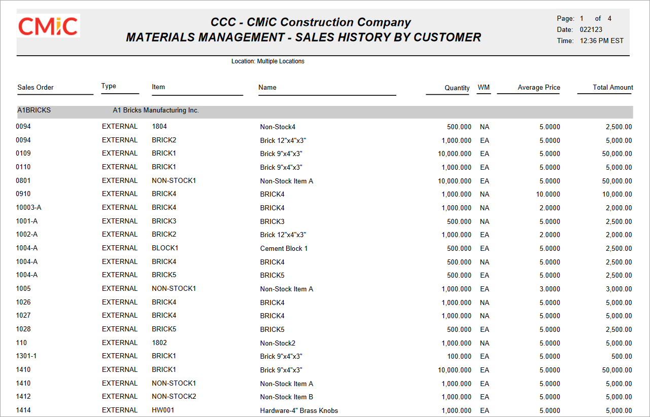 Sales History By Customer (MS_SALES_HIST_CUST)