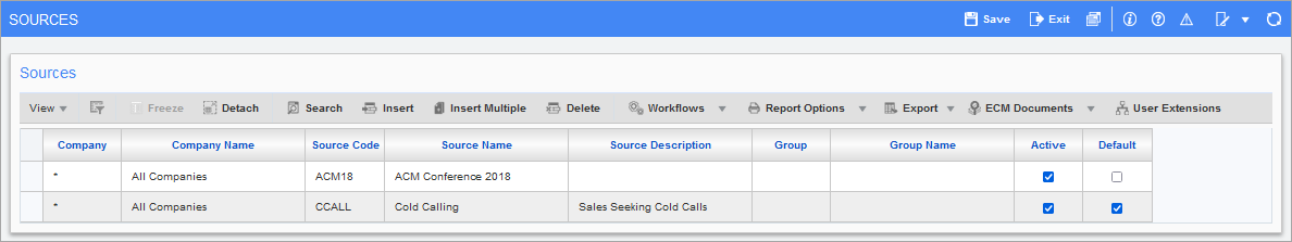 Indicates if the corresponding source entry is active. This checkbox is used to ensure that the list of available source codes does not get too large, and to stop users from accidentally selecting unused codes.